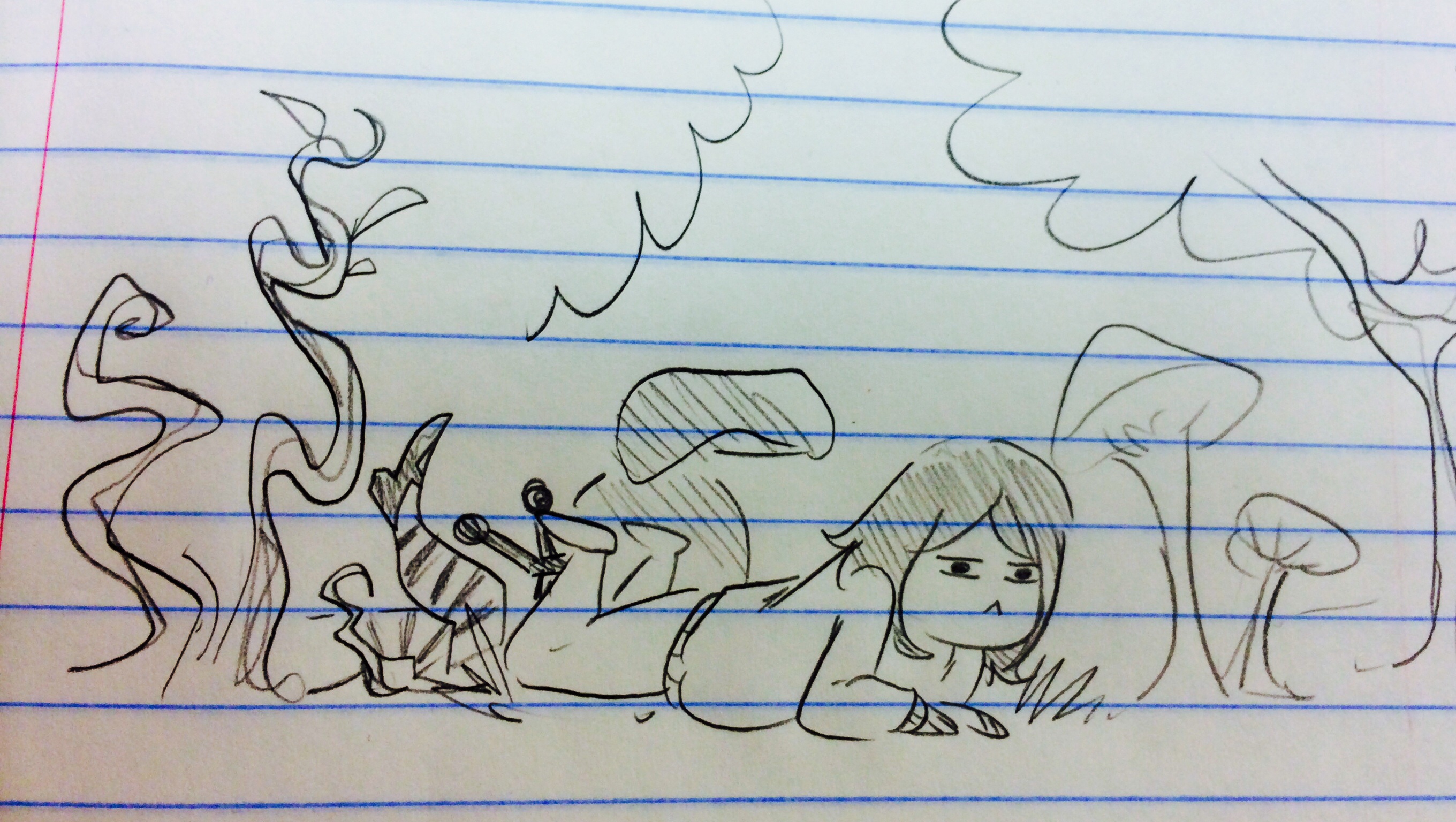 That's right... I AM MY OWN KIRITO! Quickly, I grab another stick and fashion it into a shank for A DOUBLE SWORD COMBO! Boom! That caterpillar is DEAD. Eh....there's nothing to loot but a half-smoked blunt, though...