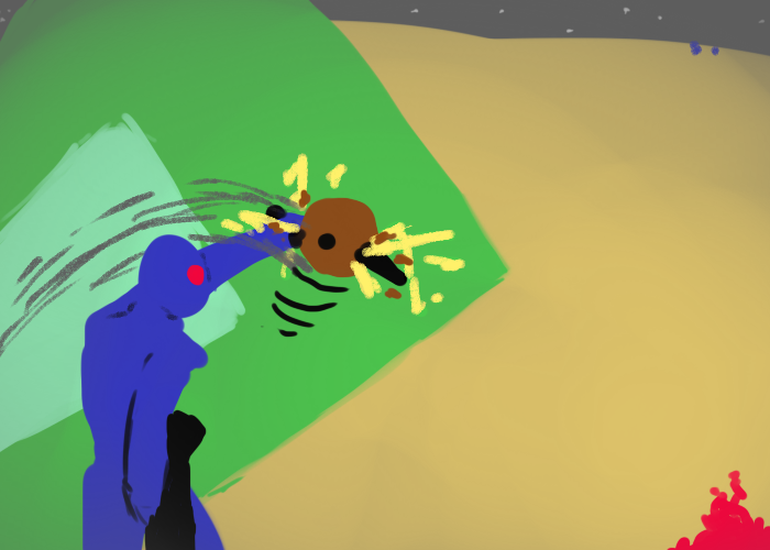 "Argh, things have been glitchin' more and more with you, bud. God I wish the guy who made you hadn't gotten smoked so early..."