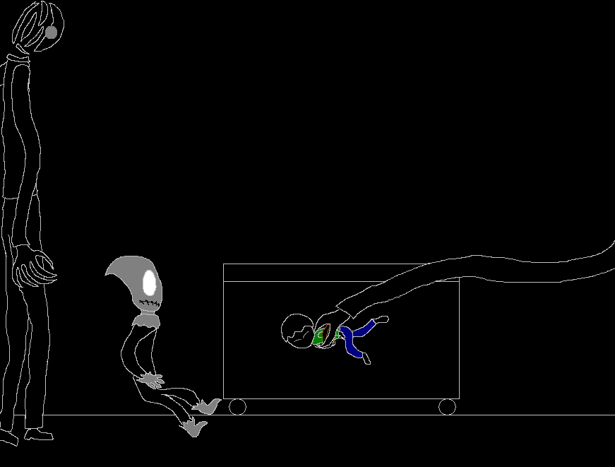 "What caused this? I don't know, but I know what they are. These things, are nightmares. Living dreams thrown into reality from humanity's subconscious. They hold no purpose other than their creator's vision of fear. And that thing out there, its the harvester of fears. You see those tendrils, they can sense even the slightest change in heart beat. I've learned to keep calm in these situations, but one kid can only go through so much. And if your trying to be funny with the babby thing, I have to admit, its the brightest thing I've seen in the past week."