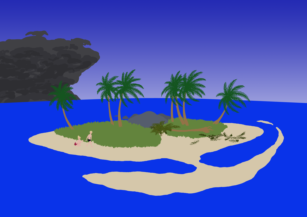 You don't have a lot of cover. See if you can dig yourself a bunker in the shadow of that large rock central to the island.