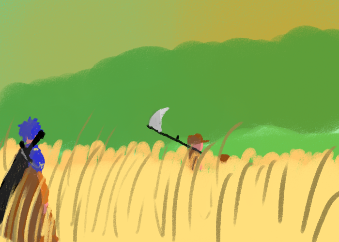 >"C'mooooon, just once more! Just one more time, how do I hold this scythe?"