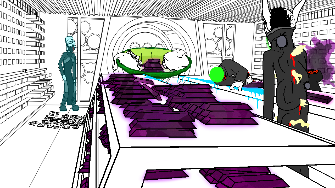 I've narrowed down the problem. And it isn't you. Far as I can tell, you're doing as well as you could, given that you have no hands, no body, and got dumped into this shit as suddenly as I did. I can't blame you, you're not even from our world. But the other fuckers... see, we've got a dumb slut with pigtails, a smarter slut who spends all her time sucking her gods dick and hasn't set foot in the real world in decades, and a bipolar nutjob dwarf who's stuck two fucking centuries ago. Even Victor- he sounds really smart, his fucking flowery language and all, but I know him. It's a fucking act. He'll talk about how he's as old as the universe and immortal and all that shit- but he's only been standing upright and not chewing dirt for, like, five years. I've known him since he was pretty much a baby. He picks shit up quick, I'll give him that, but he's still fucking ignorant about practically everything. So between this band of merry dipshits, it's no fucking wonder this ship has no captain. Nobody here with vision.