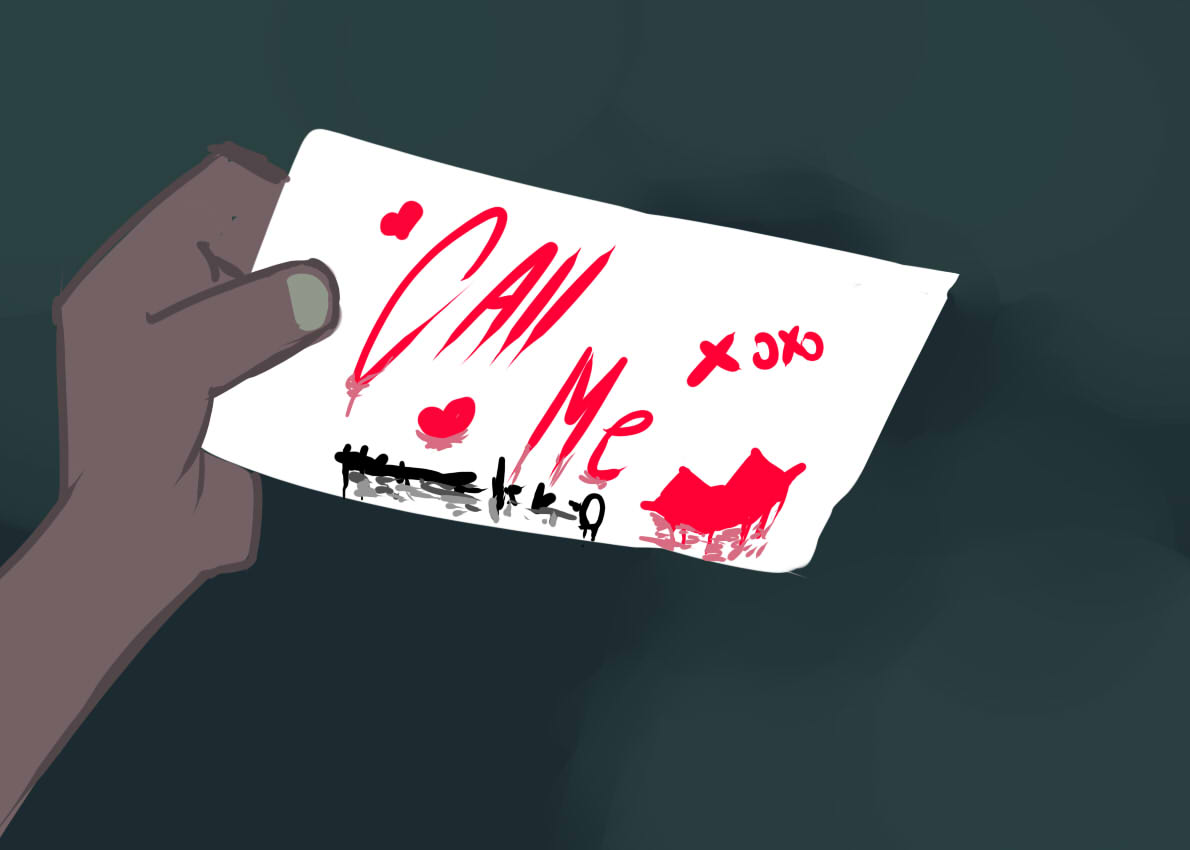 He reads the note.It says "call me" but unfortunately he can't call nobody since the number is illegible.