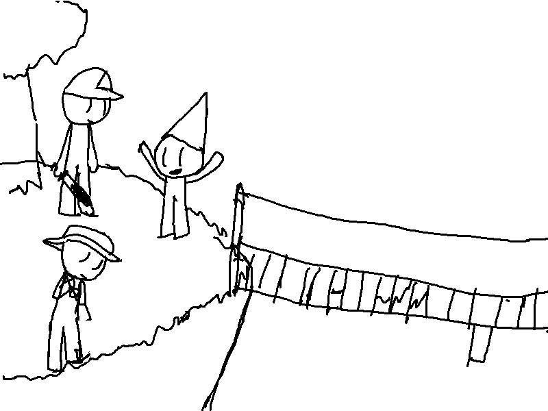 After putting the last mermaid in the lake you force the smaller troll to lead you to the wizard. After a bit of trekking you reach the mountain.