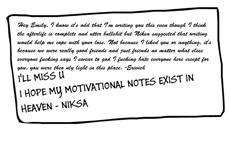 You topple over the lockers to ensure that they never open despite the previous movie trope being mentioned because fuck movie tropes. Soon after you make a little ghost costume out of the tarp for your friend. It's a nice little way of saying goodbye to him, you know this is what he wanted, or at least what you wanted for him or some shit like that.