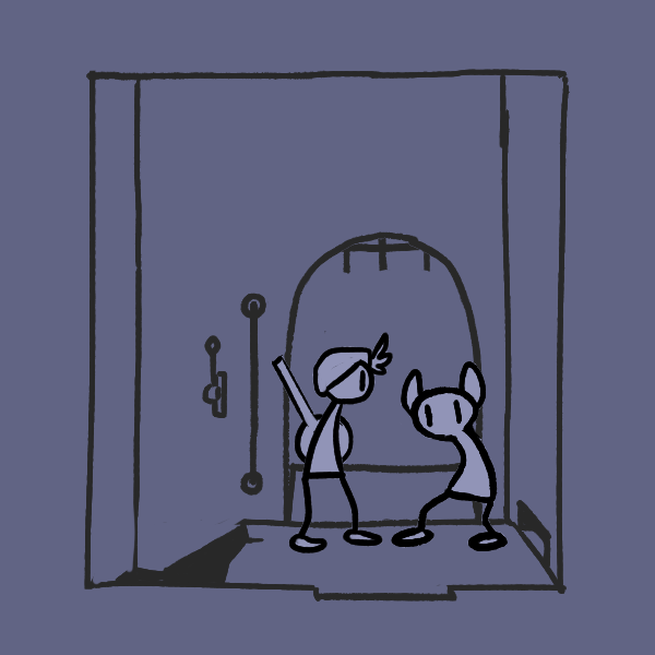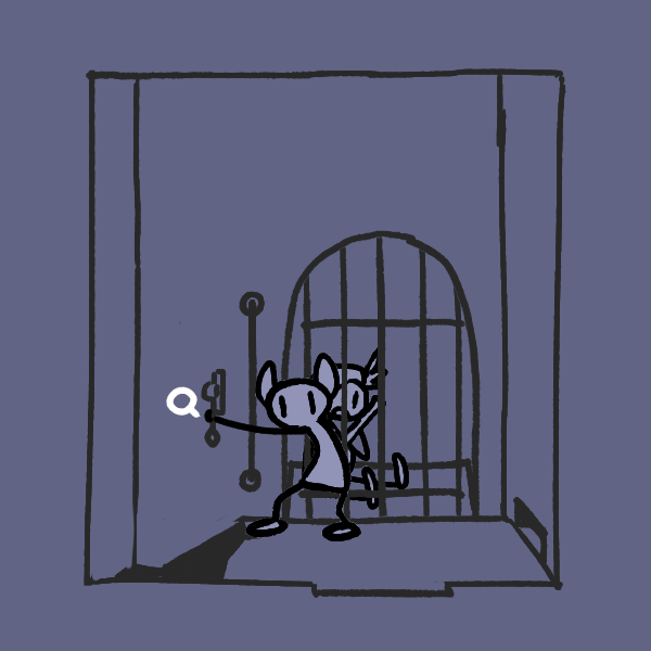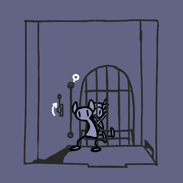 check sturdiness of lock, check stairs for secrets. If you don't find anything interesting in the room then head down the shaft.