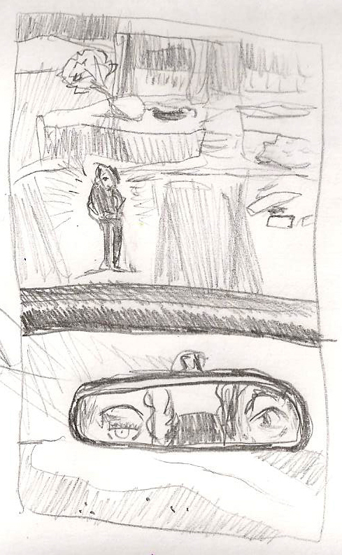 Should he run back inside? The driver seemed to want to mow him down only moments before. Call his new step dad?