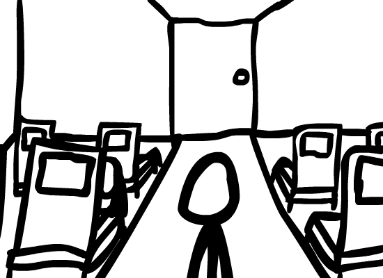 The flight attendant hands you a small steak and a glass of water. After you eat it, you could wander around the airplane a bit, the fasten seatbelt sign is off. Or, you could just sleep some more.