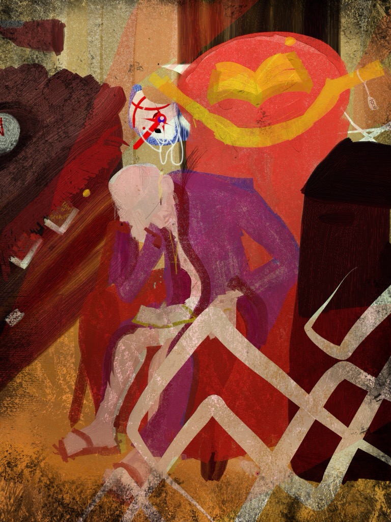 wait a minute, if the old man is blind then why was he reading a book? is the book braille?