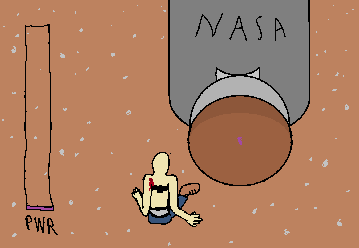 Huh. Maybe she overdid it a bit? Looks like she's out of power, she'll have to find some way to replenish that. Oh, and maybe fix that whole ruined shoulder thing.