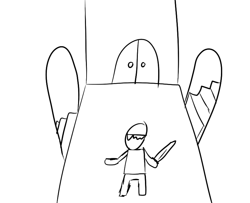 The warrior enter the rear entrance of the tower. There are three doors.