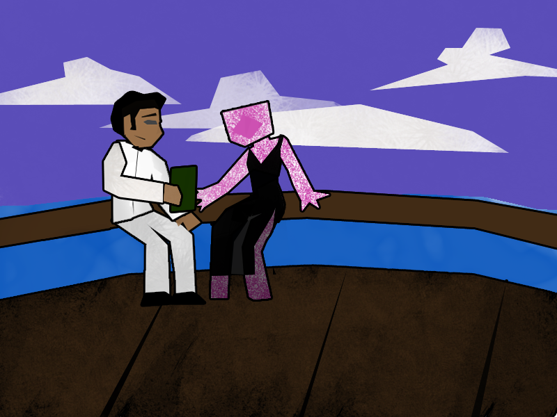 "Oh, really? Then what do you call that jumping in front of a rocket on Gardea Prime? Shut up. Right. It's gonna be pretty fucking easy, just some pirates who think they can play soldier or something. That's not an excuse to just sit with your thumb up your ass the first time you die, by the way, Aaron. Yeah, you. Okay. I know Ryan doesn't want to give a pep talk, since he's the strong silent type," he gestures to the delter, who nods.