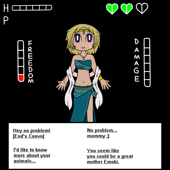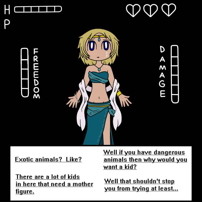 ELVIRA: "Guh.. this isn't getting anywhere. Here, let's calm down and talk, get to know each other better instead of being pissy and getting no where. I'm Elvira, let's start with you Toxic, what's the deal with that eyepatch?"