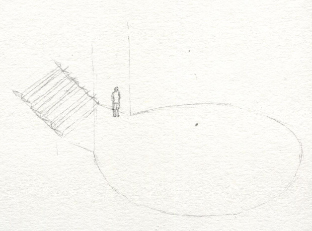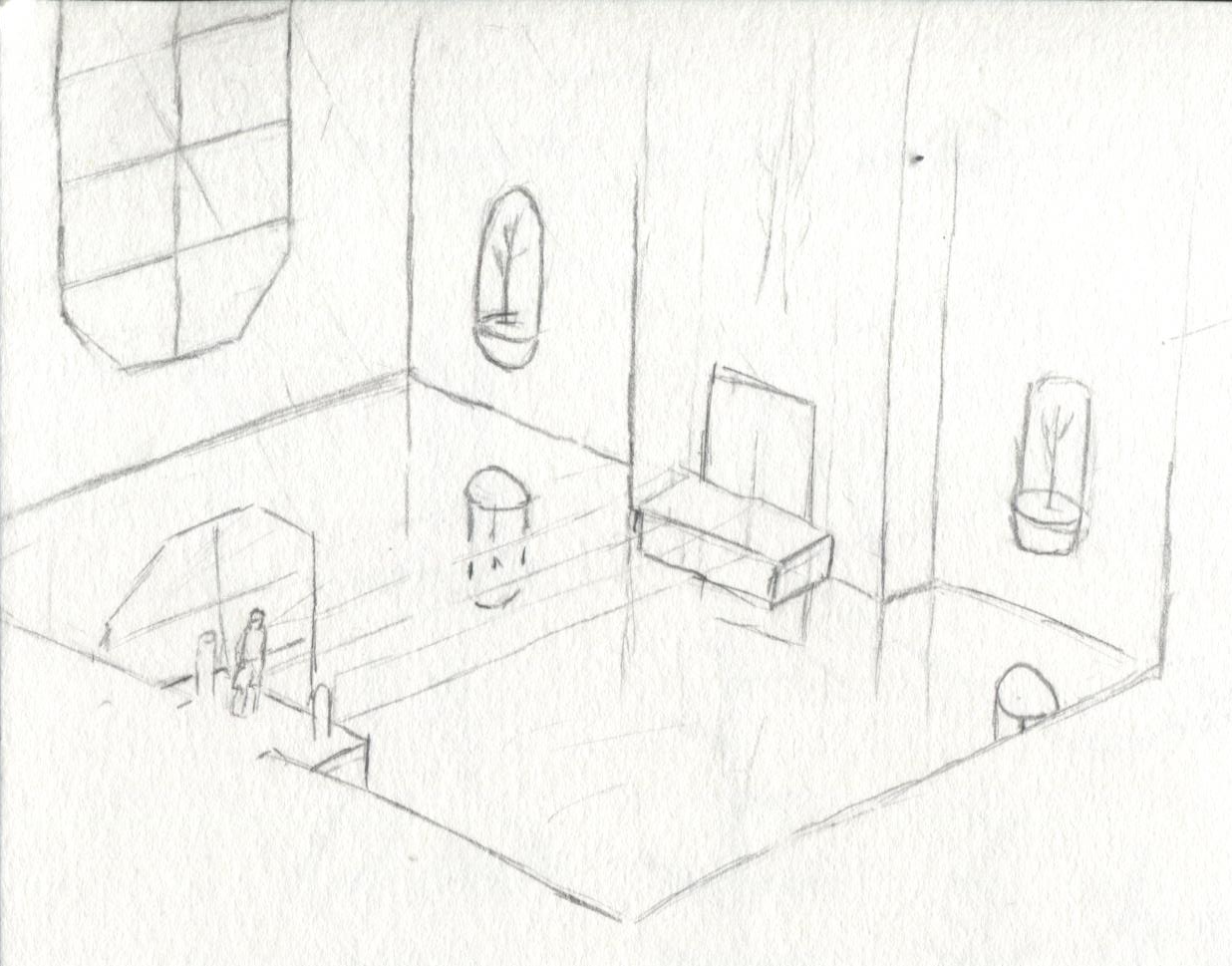 it looks like it's been lifted straight out of a cathedral, incense and all. the lower walls are light grey and featureless but after a point everything suddenly breaks off into yellowed sandstone.