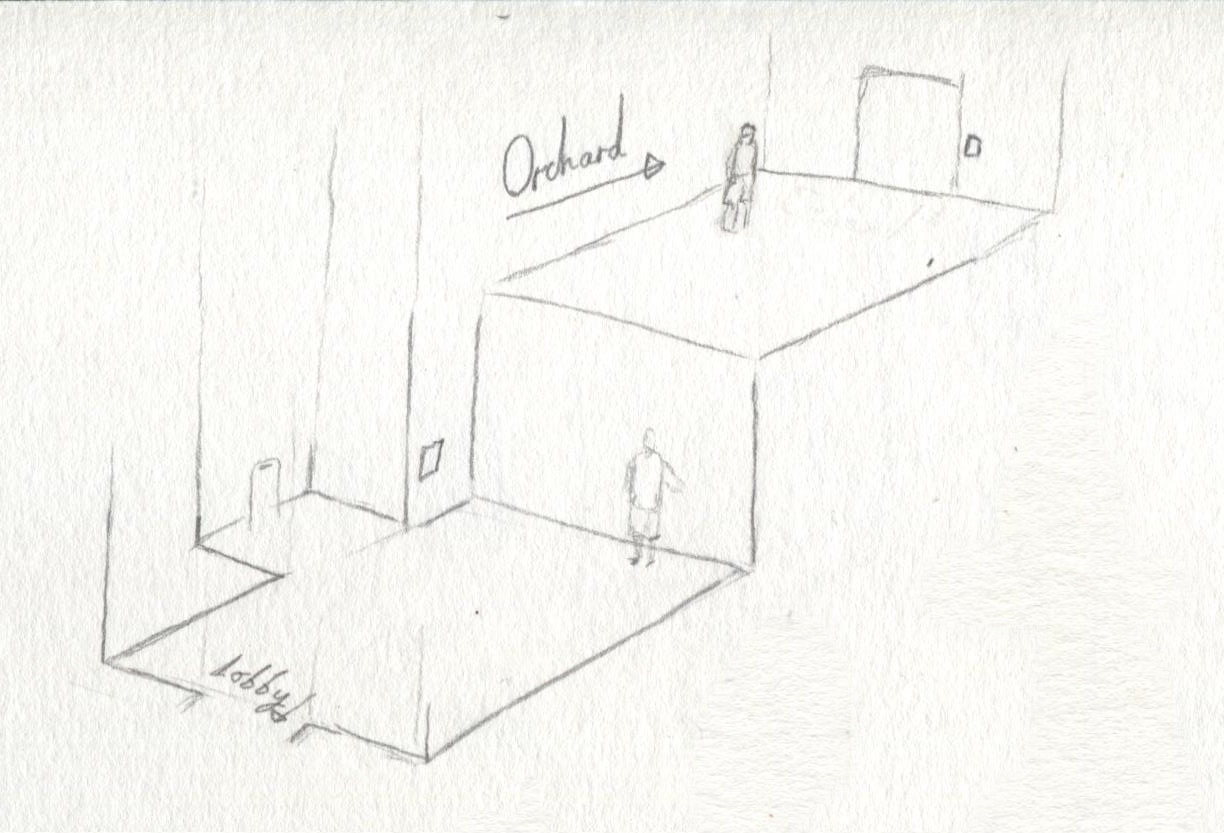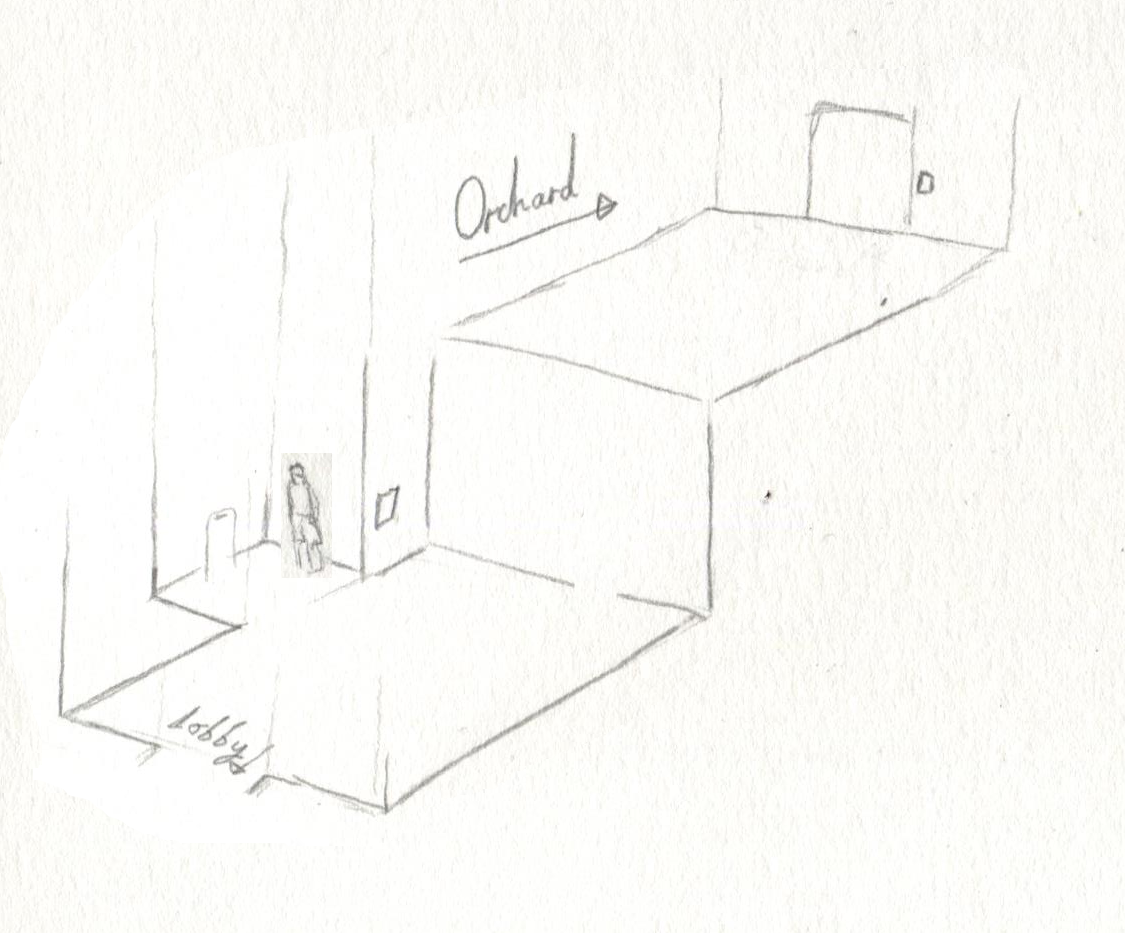 from here there are doors to exhibits labelled "Space", "Time", "Chaos" and "Perception".