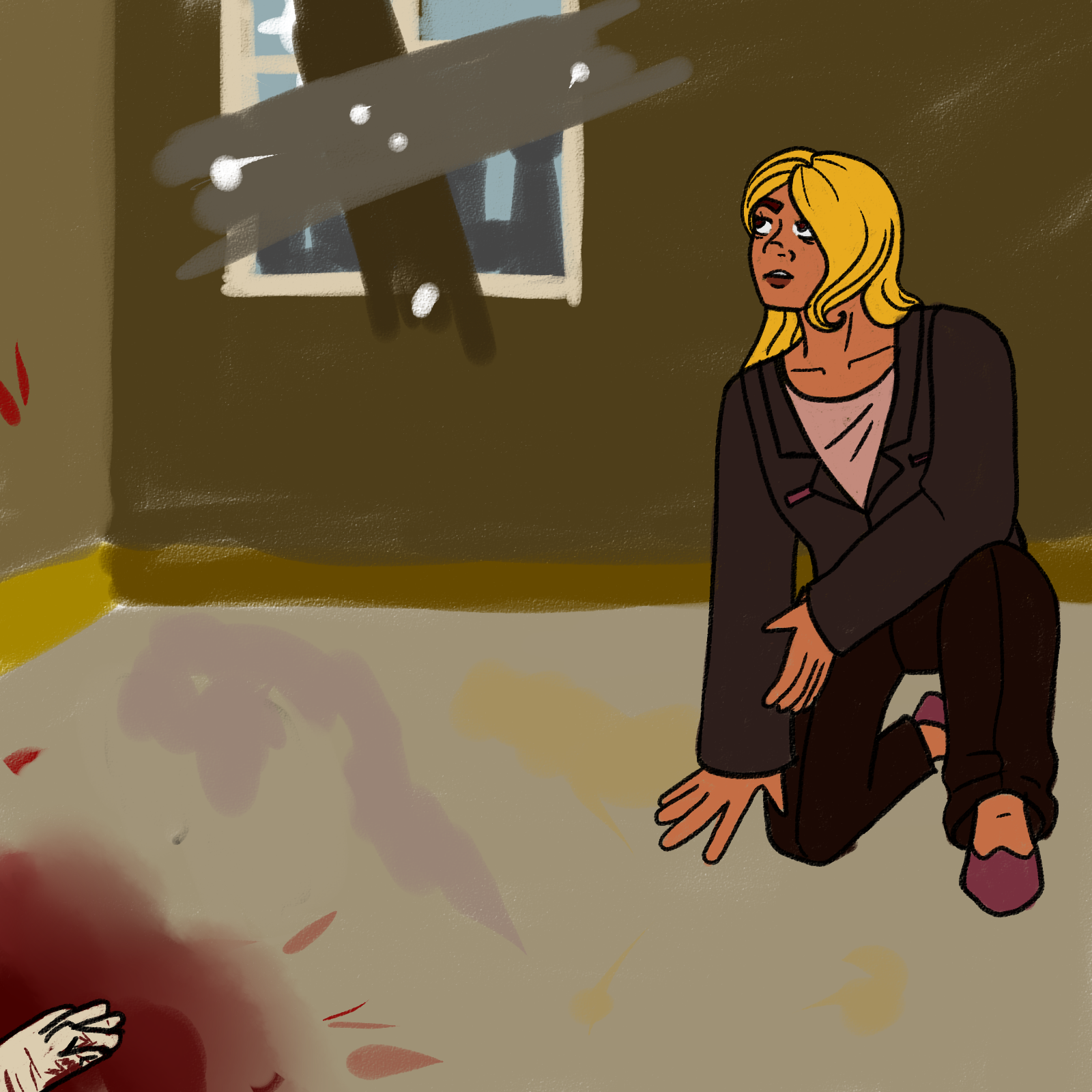 Oh my. It looks like you're in a messy situation. What happened? What is this place? Do you recognize the body?