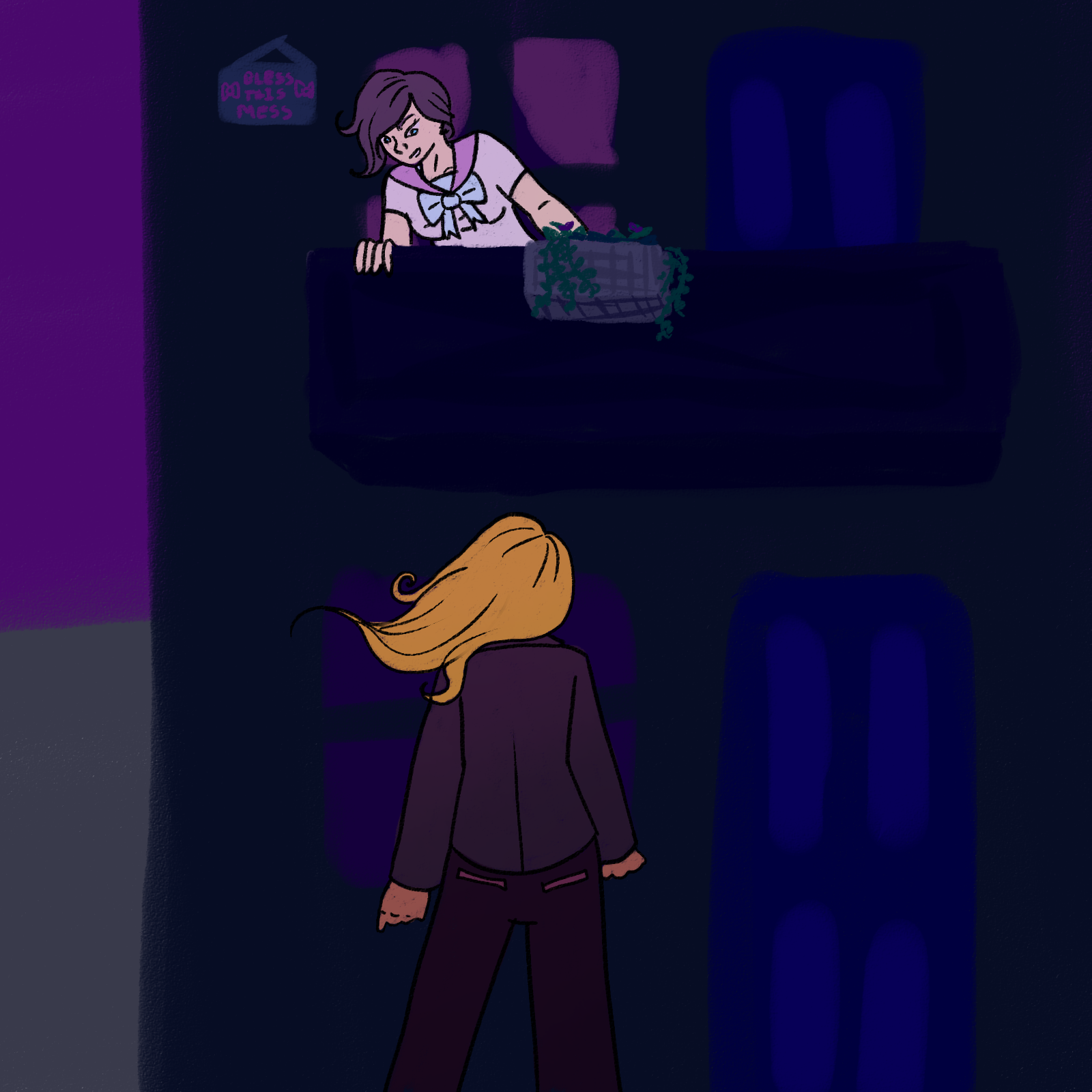 "The man with the ponytail you saw me with," you continue, trying to talk around the ghost problem, "Might have...made himself at home in my apartment. I need him out, but he doesn't seem...keen on leaving. I don't mean to assume, but...can you help me?"