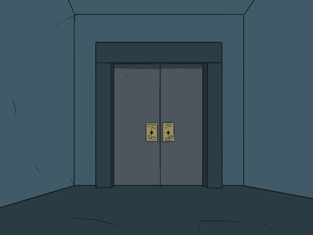 Githra steals the dwarf's belonging and the key and heads for the branch of the hall that she hasn't explored yet. There's a giant door with two keyholes that match the keys she just obtained.