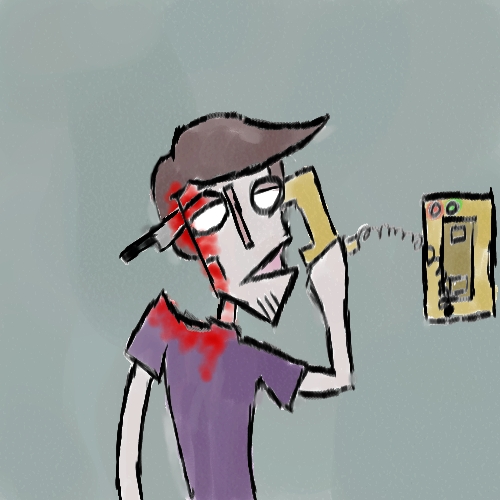 As the light clears, you can get a better look at your surroundings. You appear to be in a hospital room that contains very little scenery, and is coated in drab, saddening colors. A doctor stands with a clip board a couple feet away from you bed, hastily taking notes. As a gut reflex you immediately start chewing on your hand, attempting to ingest your arm with a very disappointing amount of success, so you inevitably stop because frankly someone can only take so much self maiming in one day. While you engage in your shenanigans, the doctor clears his throat.