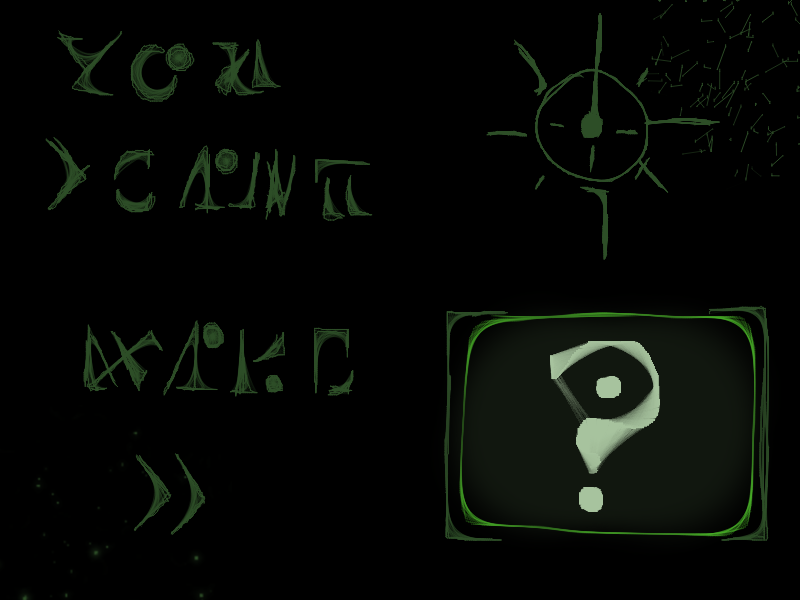 "The screen displays a message, glowing a brilliant green. The symbol nearby is unsettling, reminding you of things cut short, left unfinished... things that one could come back to to find completely changed..."