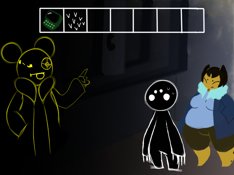 Some of the collective are in the inventory with the portable computer, allowing No 4 to type on the go.