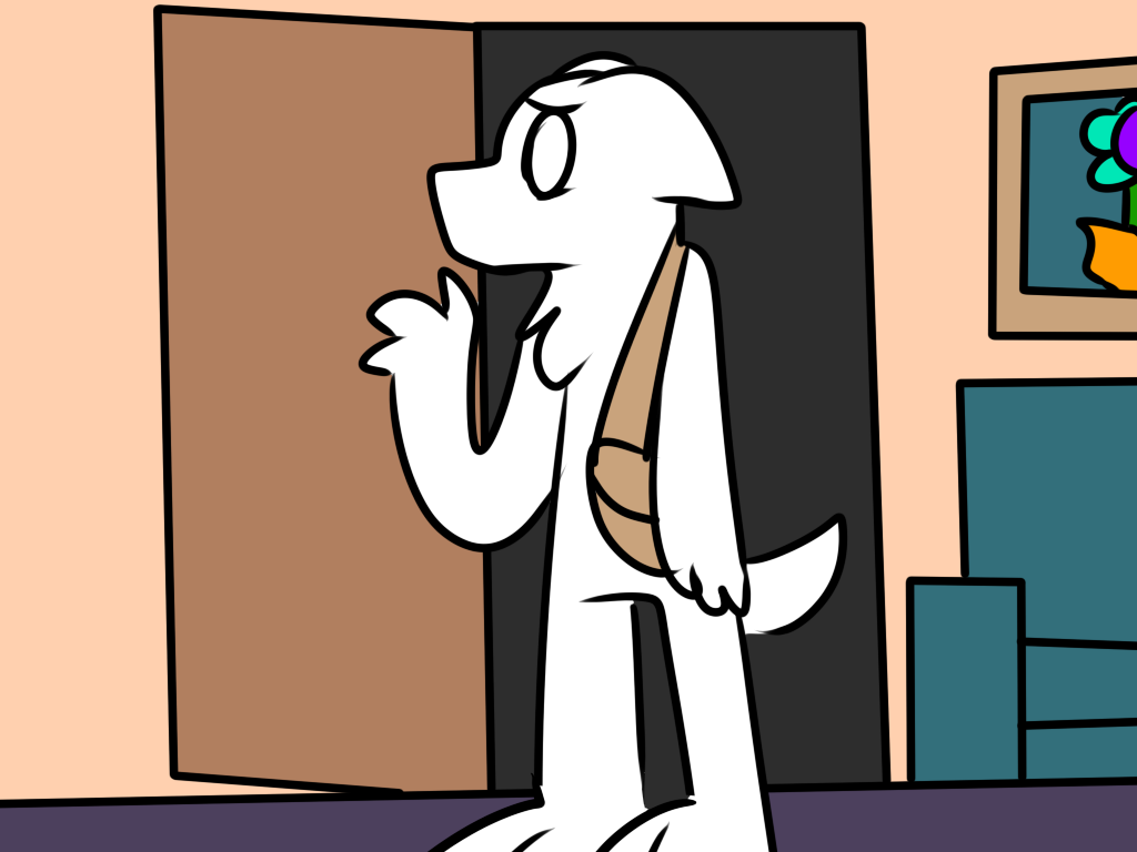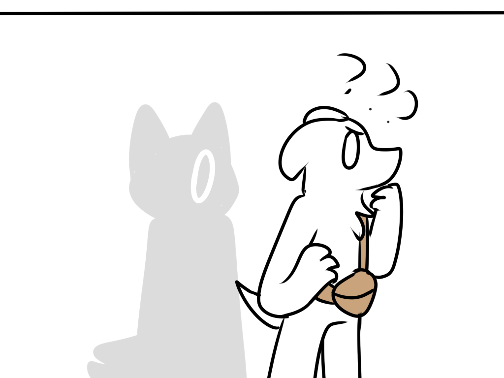 The canine apologizes sincerely, explaining that he woke up in a strange place, so he started trying to find a way out. He ran into the mentioned monster, and it got very angry after he blinded it with a flashlight. It was calling for someone named Apollo, he says. Is there any chance that's the cat?