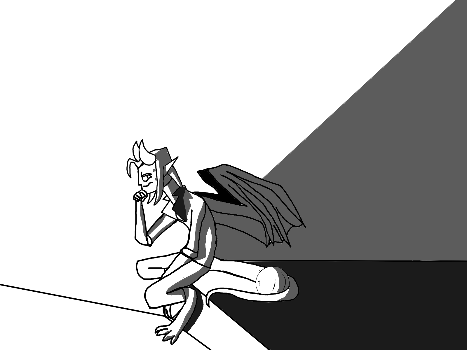 Rumor has is that he can shape-shift (a trait that if any other demon exhibits, he ritualistically sacrifices them and takes the rest of their powers and adds it to his own abilities, killing the other poor soul in the process.) and that he’s got a writhing mass of snakes instead of genitals. I don’t think I’ll ask him that if I got the chance. He has feathery wings, long claws, and a whiplike tail. He’s also cold, calculating, fond of cruel and unusual punishment for those on his bad side, and has just a general disdain for everybody. We all hate him, but those who try to kill him mysteriously vanish. He’s fear throughout all of Hell, and His name usually comes as a harbinger to bad news. His policies are strict, and he’s over-all not a fun guy.