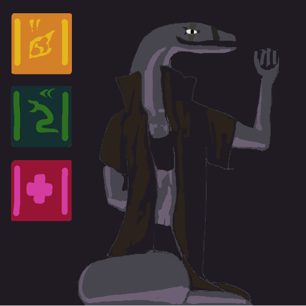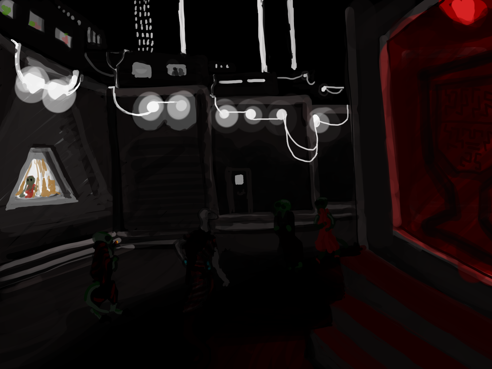 A borrocka, a race that I'm used to seeing as a lowly slave worker, stands behind a desk on which instruments of unknown function occupy half the space. He greets me with reservation in underdrought common speak and welcomes me to his butique. He doesn't move and seems to stand erect ready to maybe grab something from under his desk.
