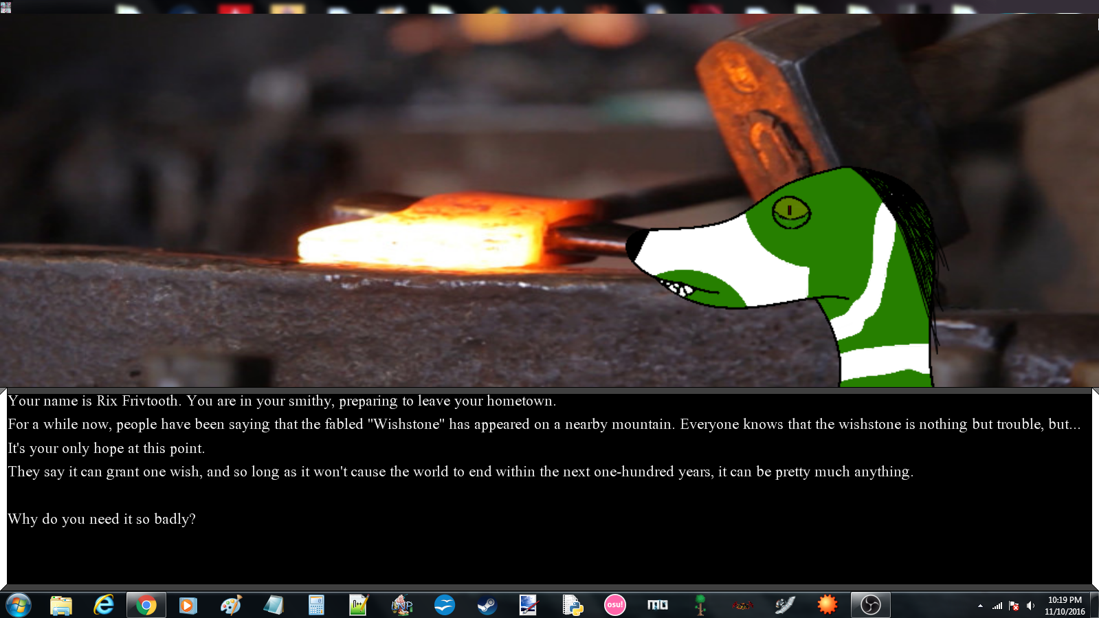 you want to be a world renown blacksmith that can craft weapons that could save or destroy entire kingdoms. You want to rise above your blood and race and be know for your work, not just as that scary looking half orc/gnoll who sometimes forgets to wear clothes.