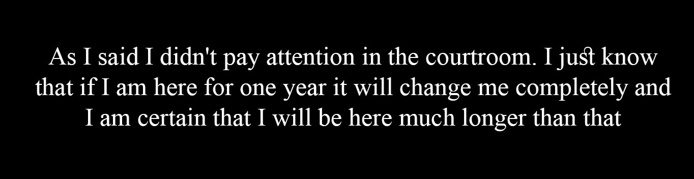 I see. Well just remember stranger, there is a life on the outside. Don't let the walls institutionalize you. People in for life hate these walls, then they get used to them, thenyou depend on them...