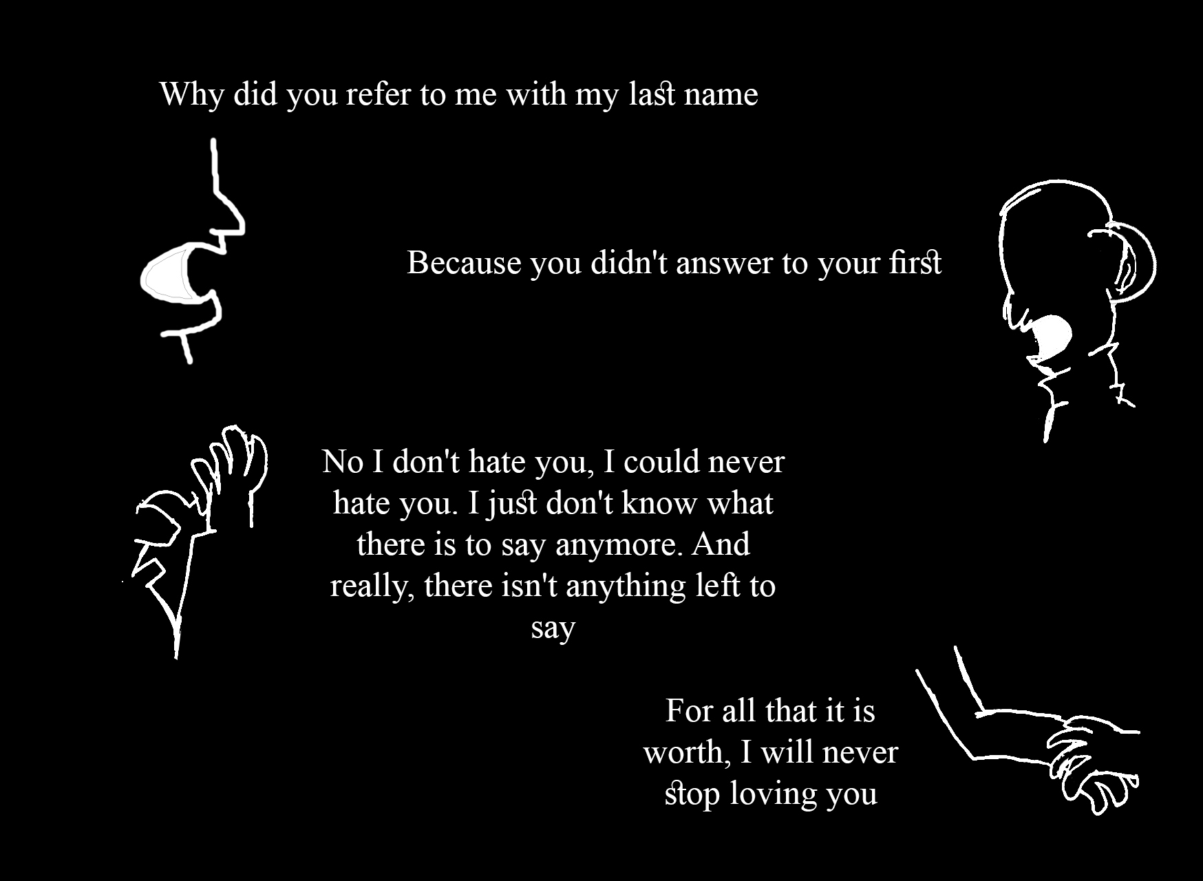 "No I don't hate you, I could never hate you. I just don't know what there is to say anymore. And really, there isn't anything left to say."