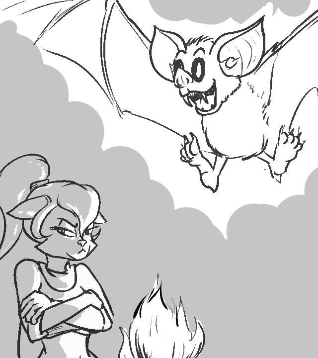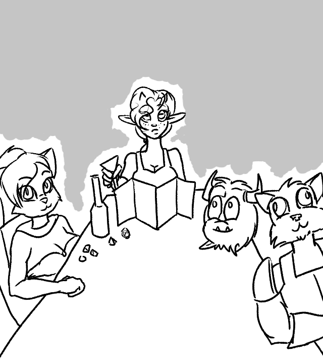Kitty explains -- while covering the mouths of Spike & Mary -- of Bigleg's fate and the party's decision to take up his task.