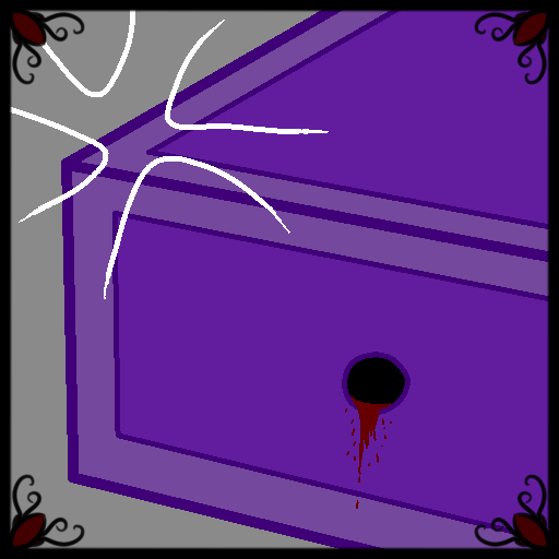 You examine the box more closely. There are two holes on contiguous sides. Blood drips out of them and you hear something making odd noises inside of it.