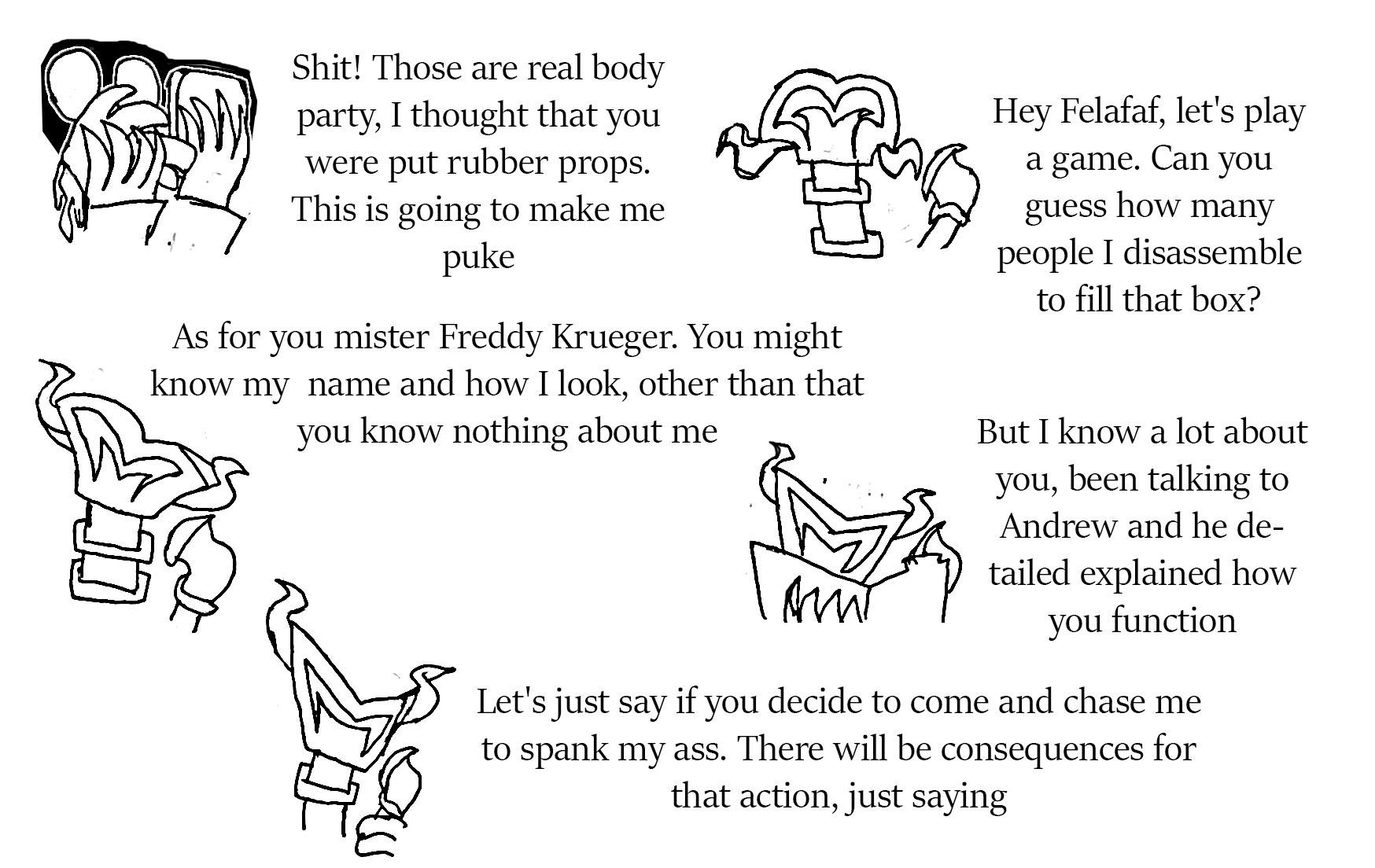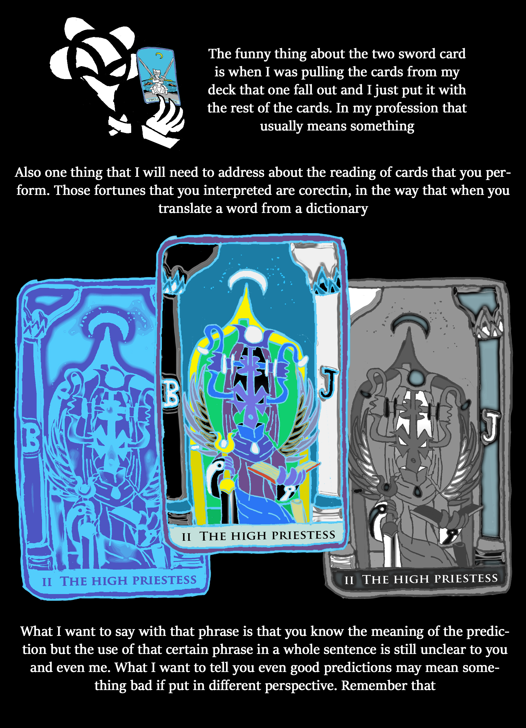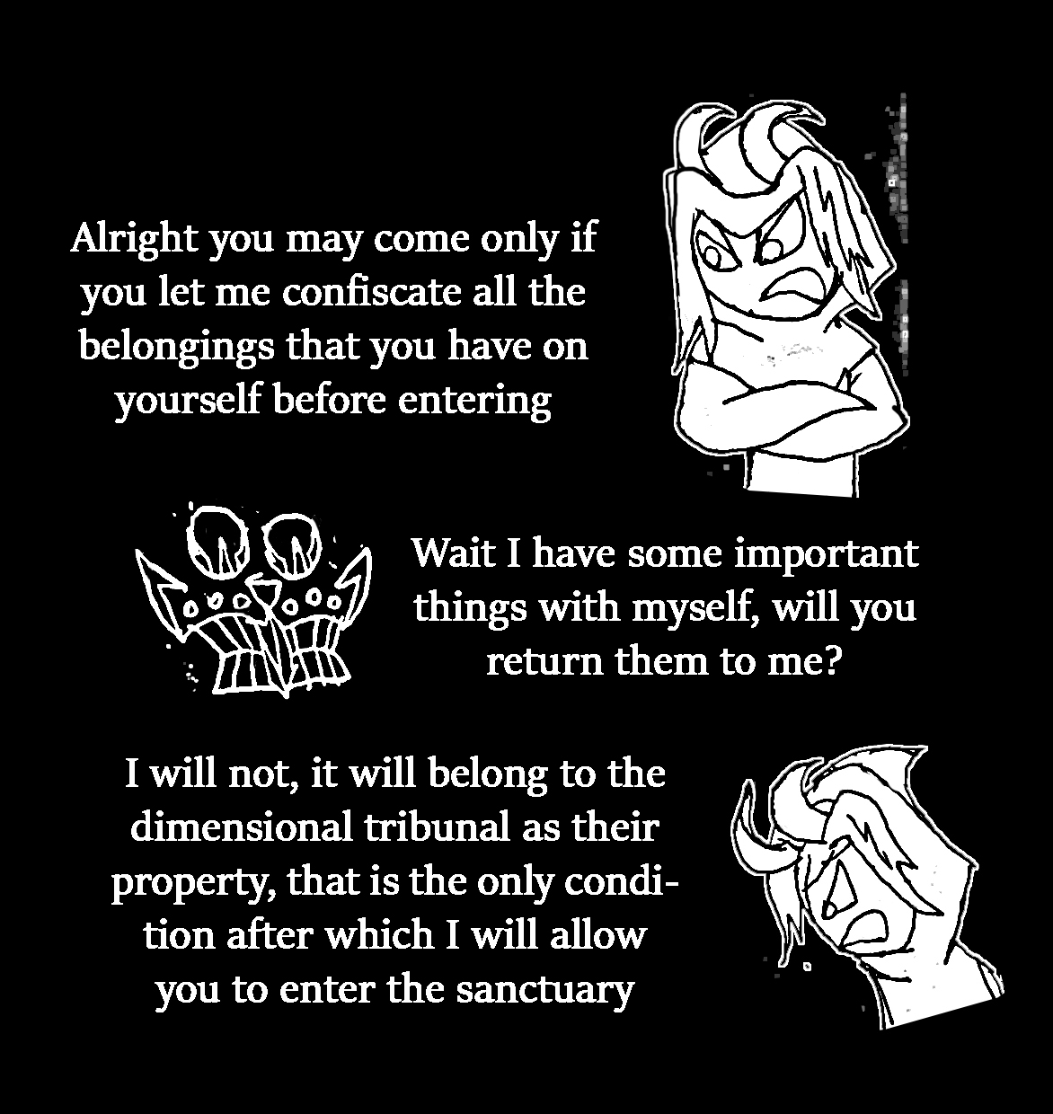 We met up with the FBI Laura, and we told her about the general that did everything he could to keep the army from fighting against the cult, she gave us the news that she activated 93's bomb. After we left, we were being stalked by someone, but before we could deal with it, Rabbot came up, and gave us a chance to save 93 if we could answer his riddle, or remove Ana's tongue if she failed. We unfortunately did fail, but Rabbot said the answer didn't matter since it was more of a test to see if Ana can respond in dire situations. I discovered I gained some of Falafaf's fortune telling powers, we discovered that 93's bomb is voice activated, and after exhausting all our possible canidates to help remove the bomb, we remembered that there was a certain riot control police officer in another dimension that may currently save her, and luckily enough, he knows about dissembling bombs. We are speaking to him through a weird receiver he got from a person who kidnapped him that was able to communicate with us, and this is where we are now. We are defusing a bomb with his help in some kind of dimensional hopping telephone.