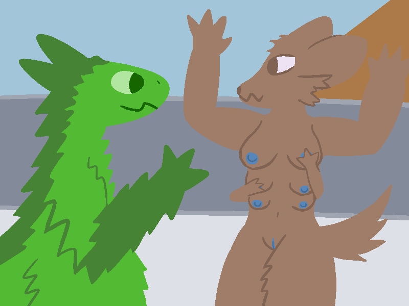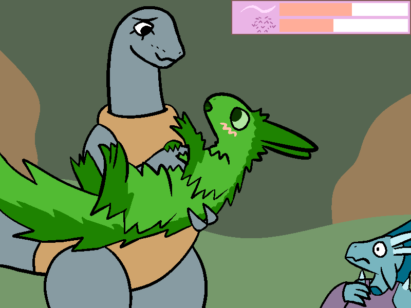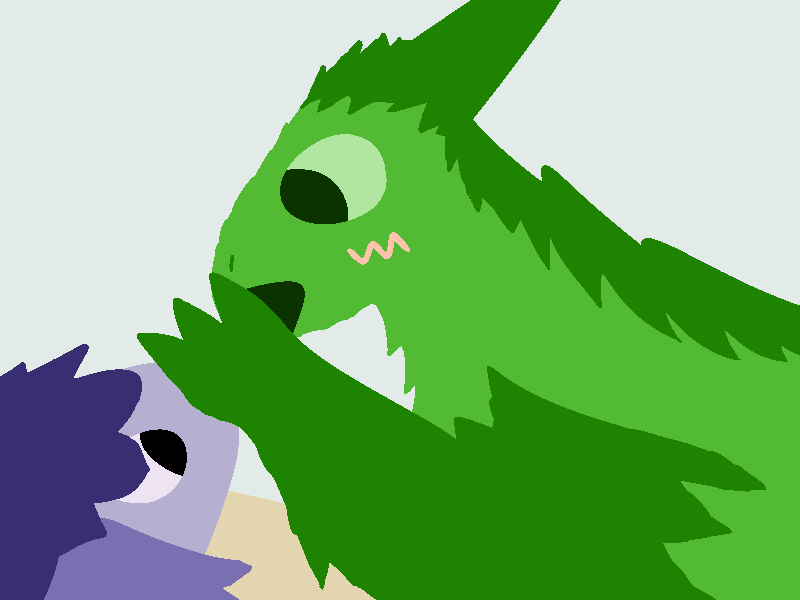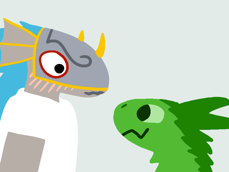 "Hmm~ Smaller! Make yourself like a big stompy dragon looking down at a tiny fluff, but in reverse!"