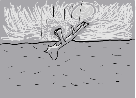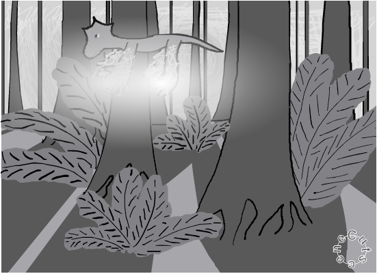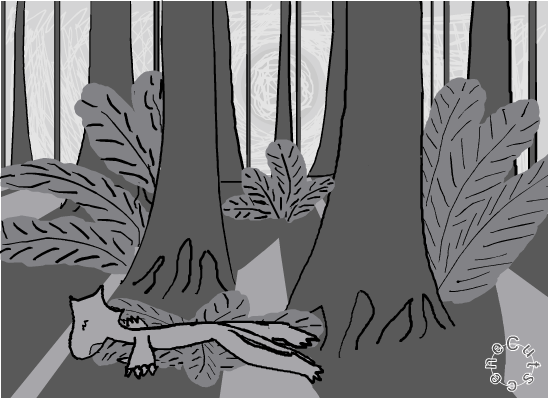 >I'm closer to the ground now, the plants are easier to make out. They look like... huge ferns, along with some trees. If I try to fall through the trees, they could cushion my fall, but I might get stabbed by the branches. If I aim for the ferns, they might not be big enough to slow me down.
