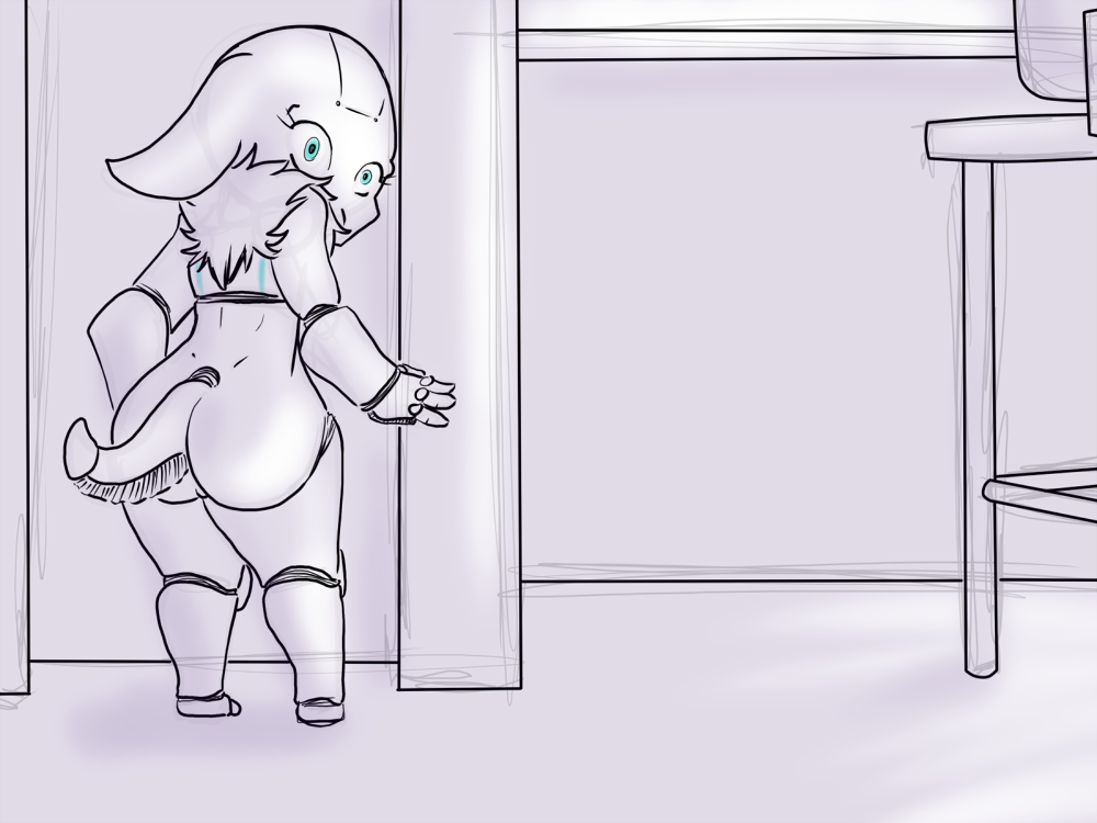 Did you hear our conversation with Mother, Eve? It's cool that we're gonna be getting a new power tail and a proper skin so we'll fit in better. ...Oh, dammit, we forgot to ask for contacts to hide our eyes' obviously robotic irises. Or perhaps we coulda gotten replacement eyes with a biological looking iris. Can we put in a request now?