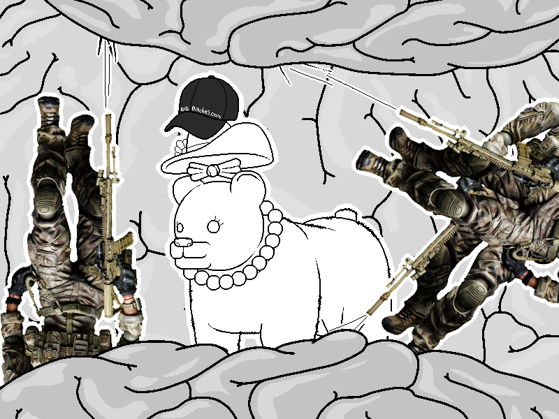 Phasing into Bear without a unicorn horn's brain, Bearnice and her well trained SEAL operatives perform their deep tissue surgical neurological correction, while future Bearnice and her well trained SEAL operatives phase into Bear with a unicorn horn's brain to perform their deep tissue surgical neurological correction. With dozens of carefully lodged lead bullet-shaped neurological inhibitors inserted simultaneously into the two bears cerebral matter, the bears are sure to be drooling, unfocused, emotionally and mentally damaged machines of perfect managerial servitude.