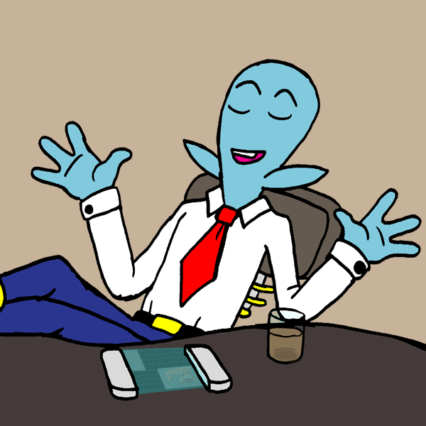 :bea: "Excuse my employer, mrs Sl'ur'Ga'zz. He likes to joke."