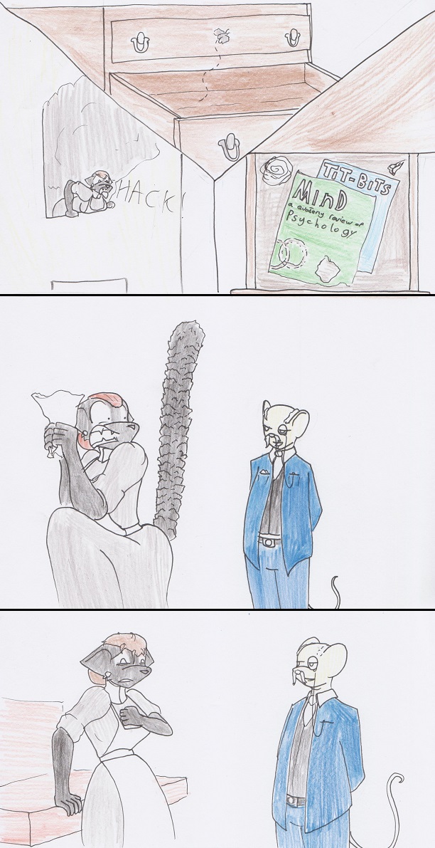You dry your eyes, check the battered old ammo case (you have about 50 bullets, 4 shotgun shells 6 rifle shots remaining) and head downstairs, you walk in to find Holmes bouncing on top of a leather case, apparently trying to close it without having to organize its contents..
