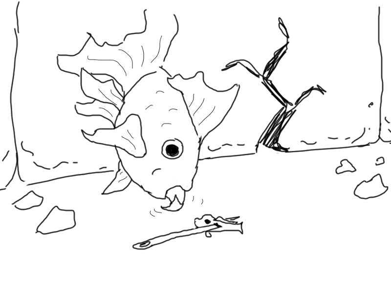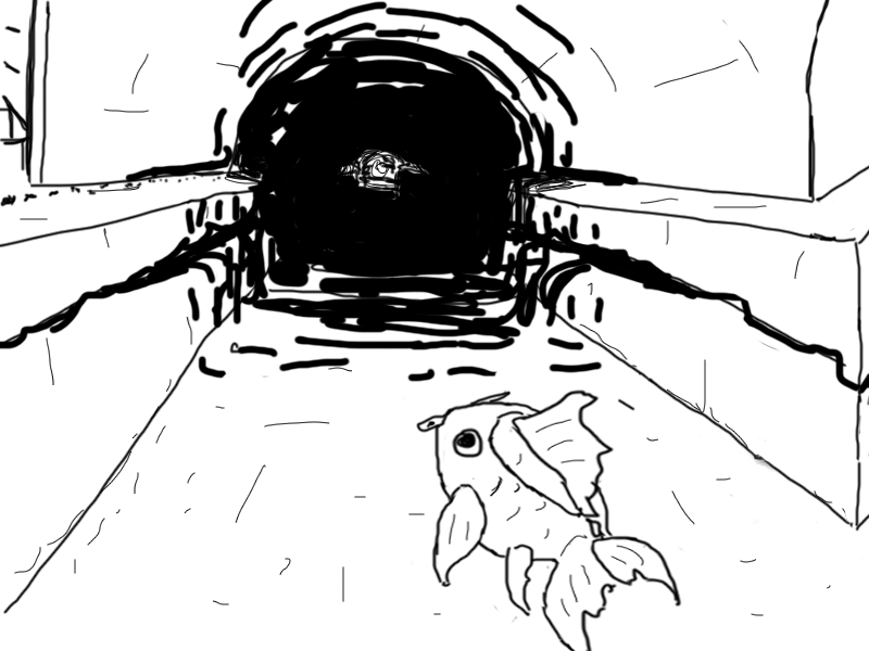 You take a moment to regard your surroundings. The two other bats have fled into the dark hole above you. Based on the amount of agitated screeching, you estimate that there are MANY MORE TASTY FOODS awaiting you there. Unfortunately, the cave-in is blocking your path through the water, and it is really quite dark. Also, multiple bats might present a greater risk to your health than just one.