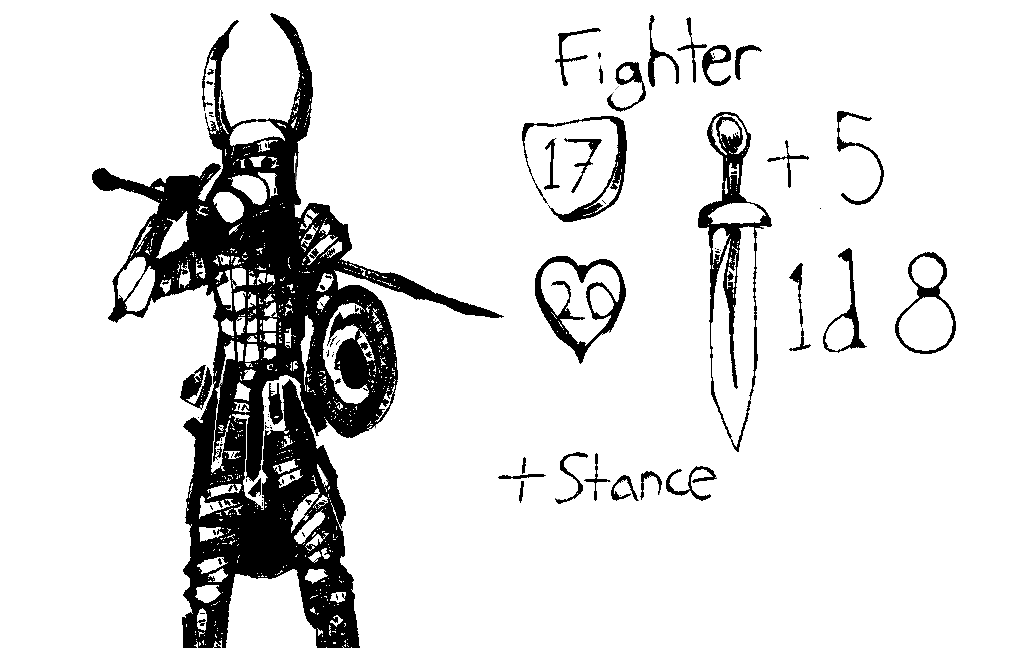 >Stance: option for -3 to AC, +2 to ATK; or -3 to ATK, +2 AC.