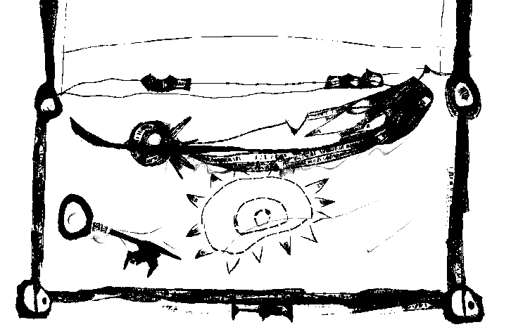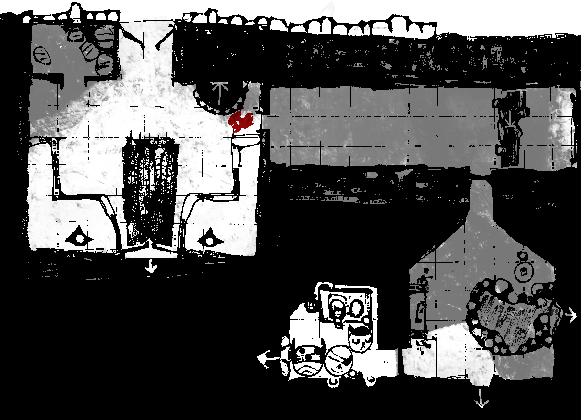 You enter into an uncomfortably small antechamber. On its north wall, a curious instrument made of copper and glass, with an eyepiece sticking out of its front. It is attached to a squat brass cylinder, from within which you can hear something gurgling.