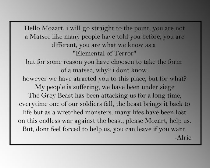 "Sir Mozart, we require your powers to protect this place"