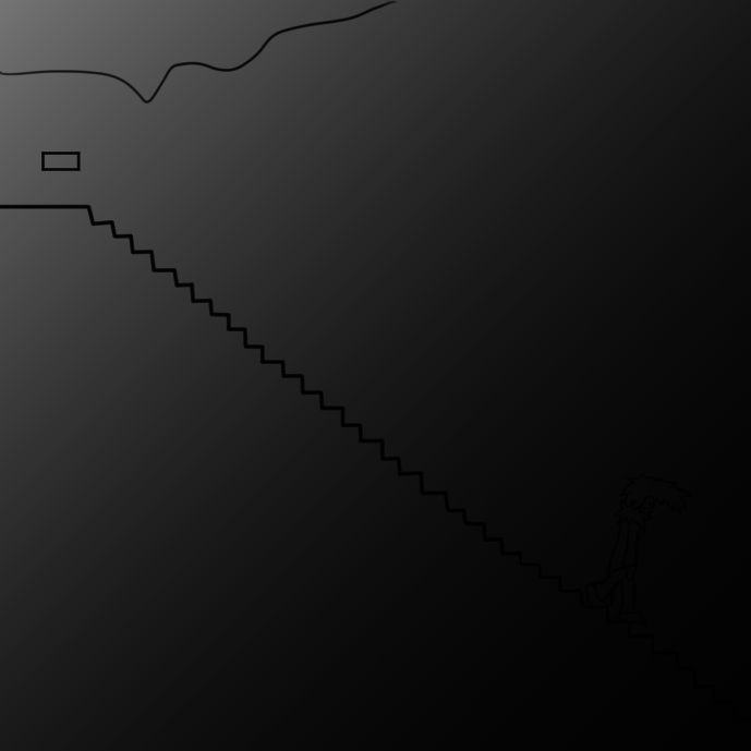 >gaze down dark staircase.