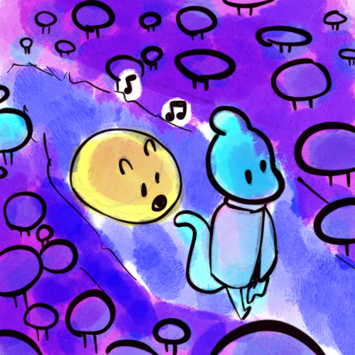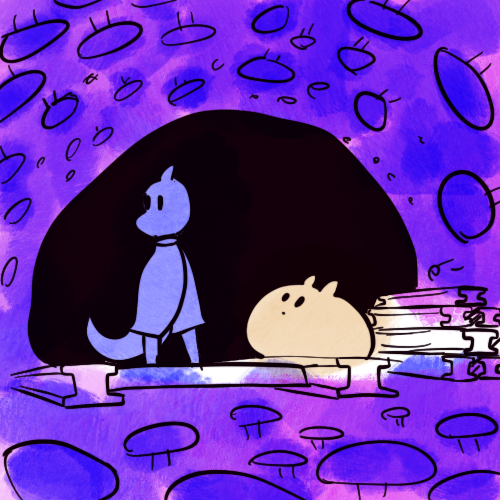 You and Humphrey stand at the mouth of an enormous cave. Humphrey leads the way, his body producing a soft yellow-green glow for you to see by. It doesn’t spread very far, but as slimes you’re able to see much better in low light than most. All the same, it’s very slow going.