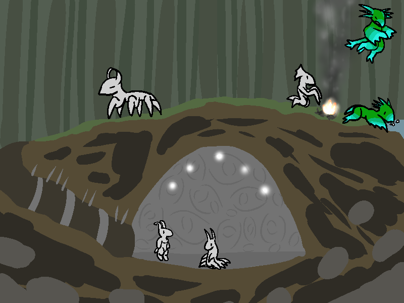 Ichor is a mysterious silvery substance with many properties. In the proper hands, ichor can be made into dense metallic weaponry and armor, spongey bubbles, and, in the case of their shelter, foamed but durable structures. It can also be formed into living, breathing creatures, as these three are. Their original creators were also creatures of ichor, able to mold it into any of these forms, and through these creators these three were given life.