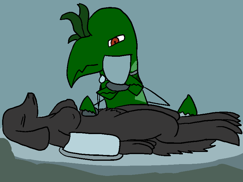 ~I really can't bring myself to care, rat thing,~ groans Voidsong, looking back at me. ~Where were we?~