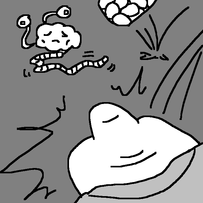 Check if the brain juice still looks ok to bathe in. If its still relatively clean, take a quick roll in it to rehydrate and set off to find those eggs.