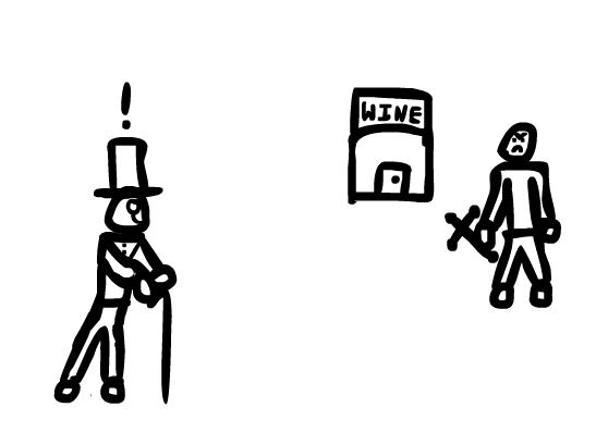 I'm sorry, what quest is this? This is not DapperQuest. This is not AlcoholQuest. This is not ThugAbuseQuest. This is fucking CASTQUEST. Let's do this. First off, recruit that thug. No, don't fuck around with me sir. You are a GOD DAMNED GENTLEMEN AND YOU WILL ACT LIKE ONE. Pay this chap off. You killed his fellow as a means of establishing dominance. Inform him of such. He is an underling, he will behave as such and LIKE IT.